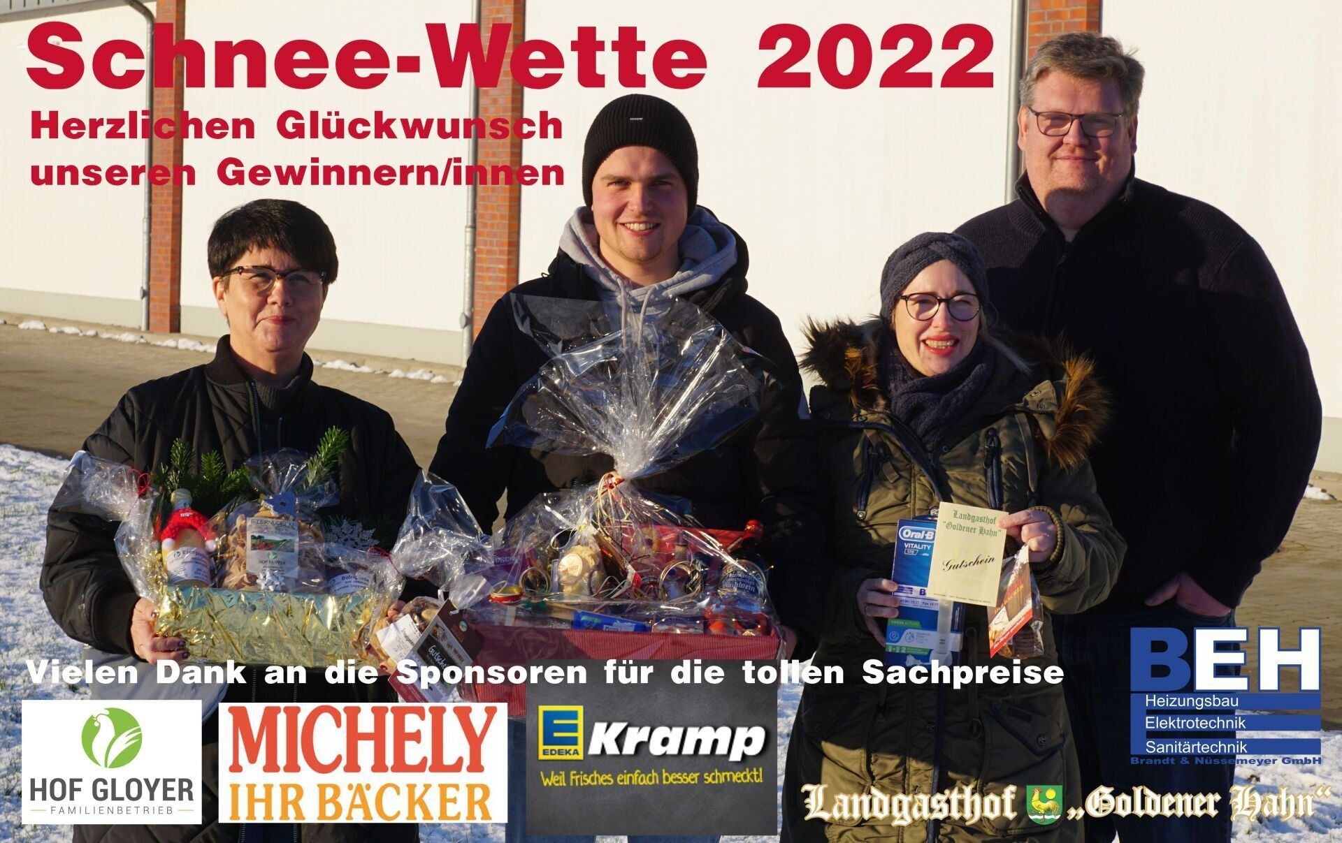 Immer erfolgreicher und beliebter. Kaum geht die Wette online, geht es auch schon los. Es wird fleißig getippt und alle wollen die beste Vorhersage treffen. So auch 2021! In diesem Jahr gewannen, Anja Grote, Inge Brösen und Frank Wallberg die Wette. Am 01. Dez. fiel der erste Schnee und diese Drei hatten mit ihrem Tipp die Treffer gelandet.